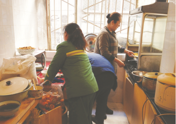 在张掖路步行街工作的保洁员们,中午外出吃饭花费较高,而带饭又不方便,尤其天热了饭容易坏。为了节省开支,张掖路的员工们午饭常常是应付为主。为解决职工“吃饭难”的问题,张掖路分公司经理想出这样一招,每天中午亲自为员工做饭吃,不仅方便了职工生活,还带给员工家一般的温馨。