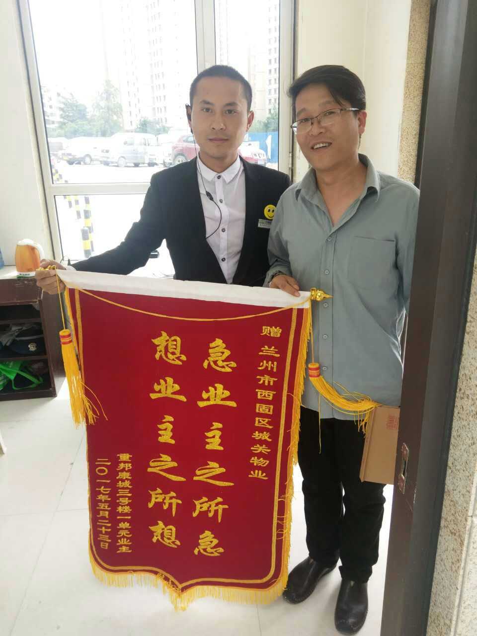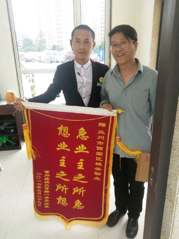 5月24日上午11点左右,重邦康城小区一户业主将一副题为“急业主之所急,想业主之所想”的锦旗送到了物业办公室,感谢物业人员在干好本质工作的同时,积极热心的帮忙寻找自家的小狗。该业主强调,自从入住这个小区以来,每一天都过的很舒心,城关物业工作人员专业素质强,服务热情周到。在得知小狗丢了的情况下,积极主动的安排人员帮忙寻找,并最终找到小狗。感谢城关物业提供如此优质、贴心、专业的服务。田晓晨经理说道,业主的事不论大小,只要有需要,我们定会全力以赴。