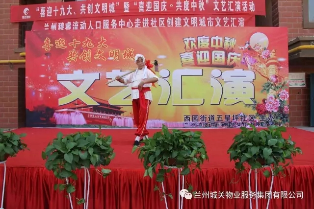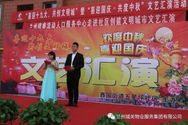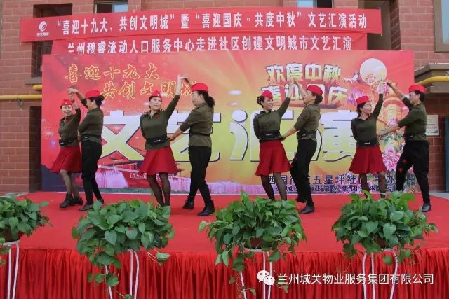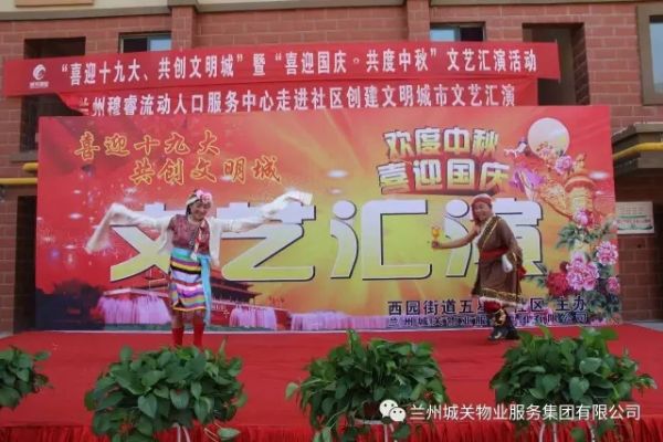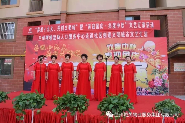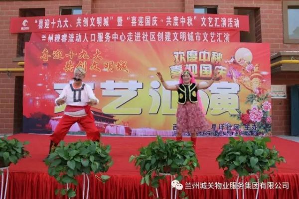 为了迎接党的十九大胜利召开,积极配合创建全国文明城市工作的开展,丰富业主的文化生活,在“双节”来临之际,城关物业服务集团中石油项目部联合五星坪社区共同举办了“喜迎十九大”文艺汇演。