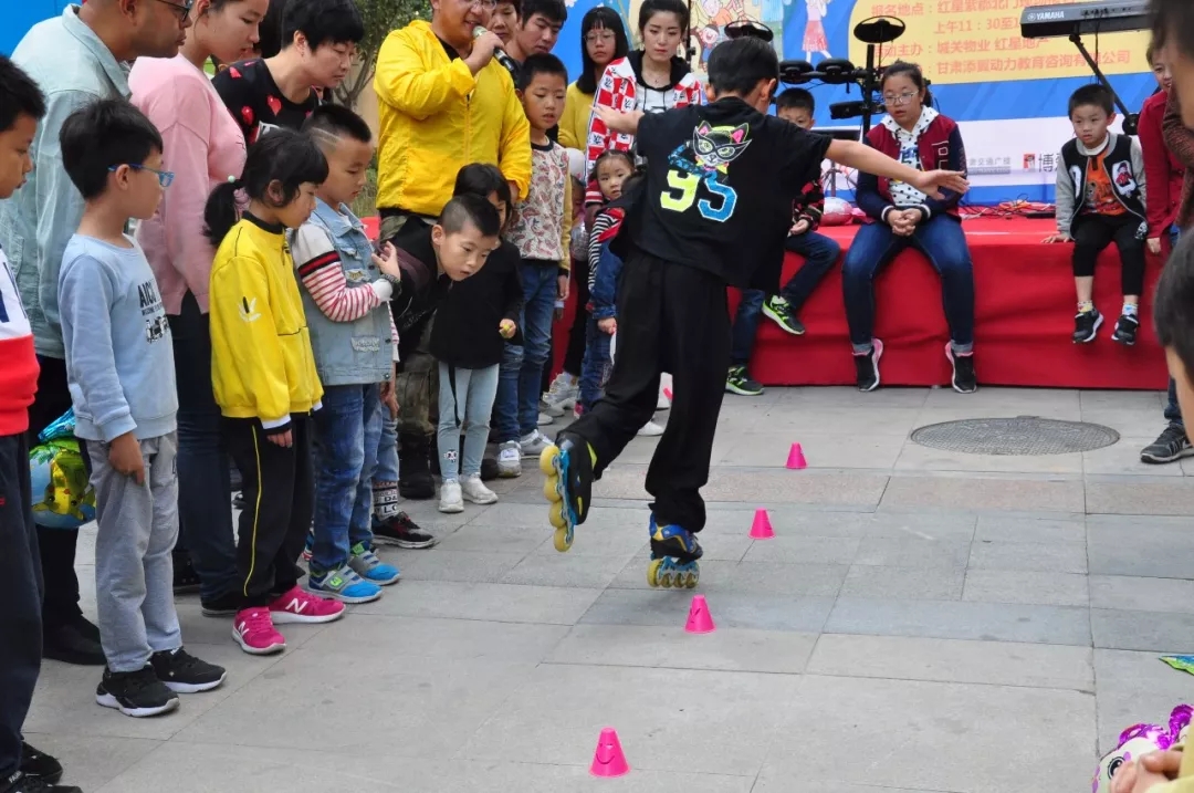 开场小朋友带来的精彩轮滑表演,赢得了满场喝彩。小小的他高超的轮滑技巧,展示了他非凡的锻炼功底。接下来的亲子合作的拼字游戏更是紧张而激烈,父母孩子或席地而坐,或奔跑在分会场的路上,玩得不亦乐乎。