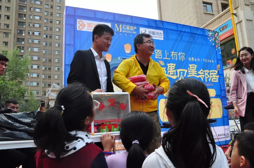 伴随着现场一首好听的歌曲,活动进入尾声,也迎来了让小朋友欢呼雀跃的抽奖环节,红星紫郡项目部经理郭永杰为大家颁奖。现场一位小朋友的妈妈高兴的说:“奖品大小无所谓,重要的事让孩子参与了活动,感受到了无比的快乐”。另外还给每位小朋友赠送了荧光棒,中秋佳节,孩子们会用它来点亮黑夜,欢度节日!
