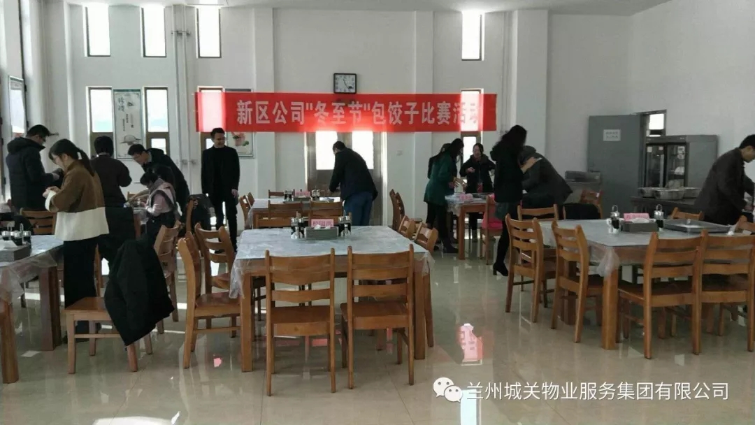 西固虚拟养老院在冬至节当天,为西固区的四十户三无老人送上速冻水饺;广场项目部为辛勤工作的员工也送上了水饺。除此之外,城关物业各项目部也组织了形式各异的活动。新区移动数据中心项目部配合移动公司进行包饺子比赛,共有六个部门参加此次活动,由厨师和甲方领导进行点评,名列前三名的部门将给予奖励。交大桃海花园项目部组织员工包饺子,员工们一起聚餐,互相交流增强团队凝聚力。