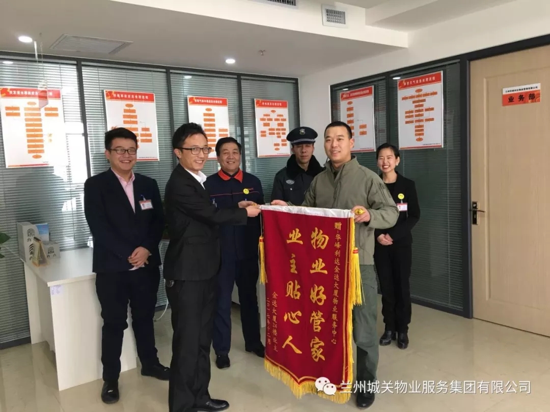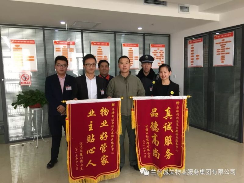 近日,金达商务大厦24楼业主将题有“真诚服务,品德高尚”、“物业好管家,业主贴心人”的两面锦旗送至华峰利达物业公司,并对工作人员心系业主、认真负责的工作态度表示了肯定和感谢。