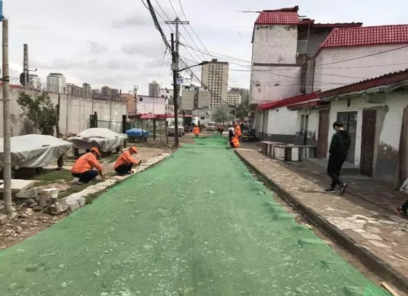 铁路沿线改造后路面铺设了毛毡