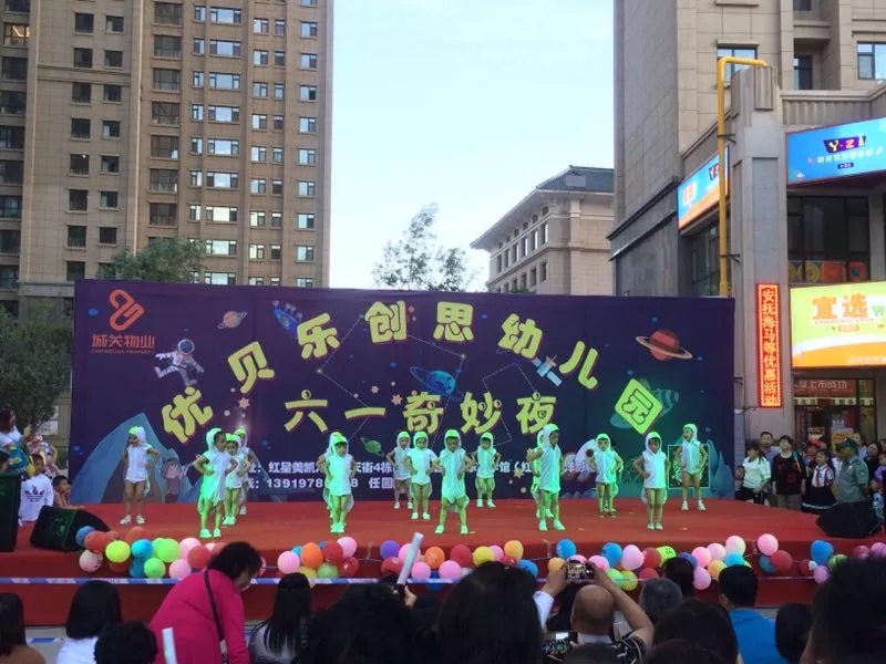 5月31日晚红星紫郡小区门口星光璀璨,灯火辉煌。为营造小区节日气氛,丰富社区文化生活,真诚回馈业主,树立品牌形象,由城关物业联合优贝乐创思幼儿园举办的“六一”文艺晚会在此隆重举行。