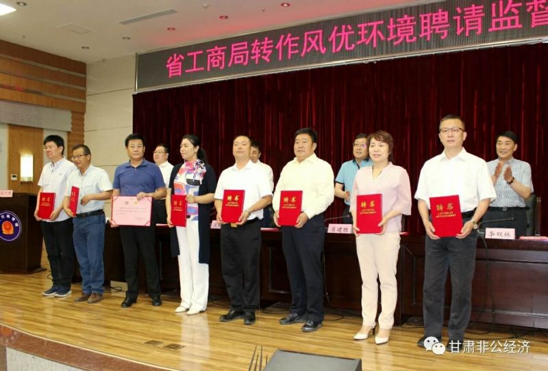 6月14号,甘肃省工商局召开了转作风优环境聘请监督员的会议。为了深入开展作风建设年活动,加强对全省工商系统活动开展情况的监督,作风建设年活动监督员是工商系统转变作风,优化发展环境的一项有效措施。集聚全省、市、县市区党代表、人大代表、政协委员中的民主党派、无党派人士及优秀企业家代表的的力量开展监督工作。会上共确定了37位监督员 ,他们来自不同的领域,人员涵盖层面广、社会公认度高、监督能力强,具有广泛的代表性。