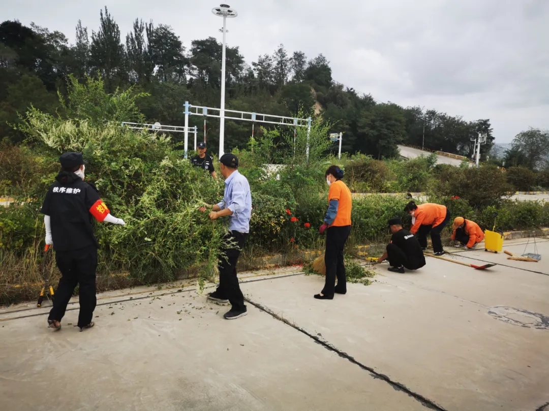 保洁人员清理杂草