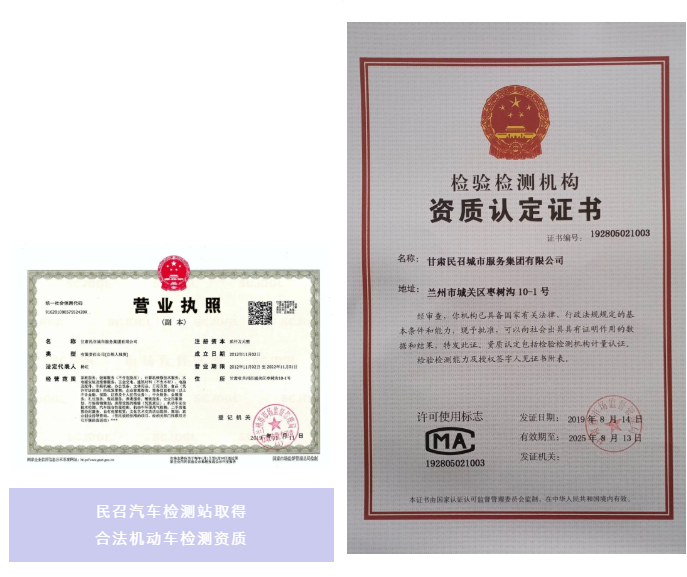 民召汽车检测站位于甘肃省兰州市城关区枣树沟10-1号(兰州市车管所向东500米),总占地面积3700平方米,交通便利,设备齐全。检测站内设有安全性能检测线2条,环保检测线2条,年检测能力20000台次,专业汽车检测技术人员30余人。经验丰富的检测团队为广大车主提供机动车安全技术检验,汽车综合性能检测,机动车环保尾气检测及治理服务。