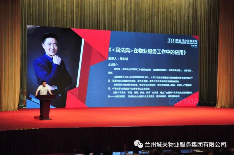 随后,2020物业行业发展论坛召开,邀请了三位大咖为现场参会人员送上了精彩的演讲。中物知乎创始人、法眼集团董事长周华斌先生从物业合同权利与义务、任意解除权以及物业服务合同要点等方面讲述了《民法典》在物业服务工作中的应用。他表示,物业工作人员要全面理解《民法典》并在实际工作中灵活应用,让《民法典》更好+的为物业企业服务,保障物业公司的合法权益。