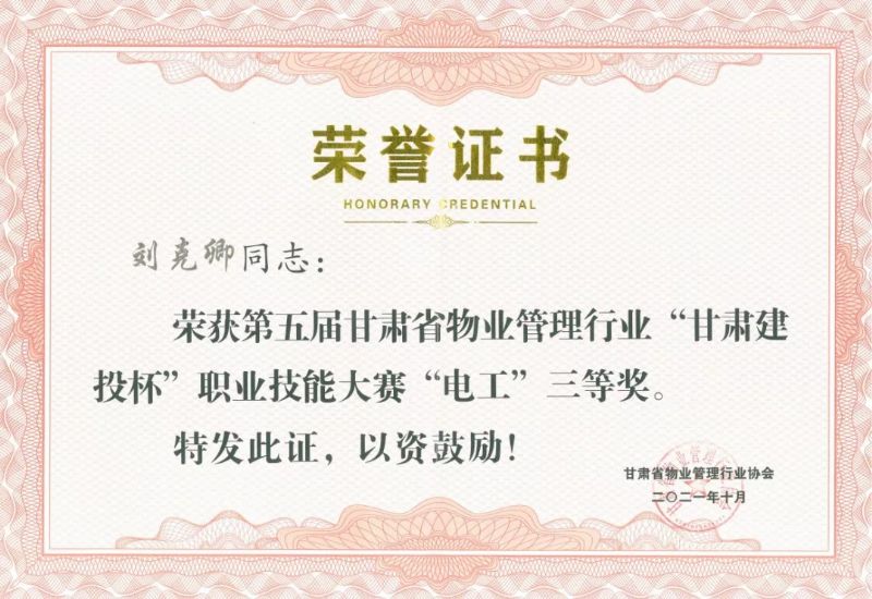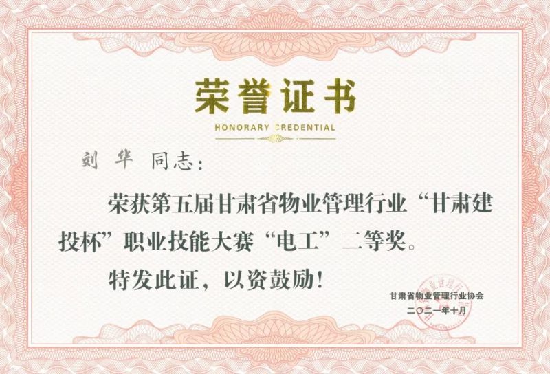 刘华拥有超过20年的维修岗位工作经验,任职于城关物业武威分公司凉州区政府项目部,工作认真踏实,勤劳刻苦,扎实的专业技能和较强的业务能力也帮助他在比赛中稳定发挥,荣获电工组二等奖。