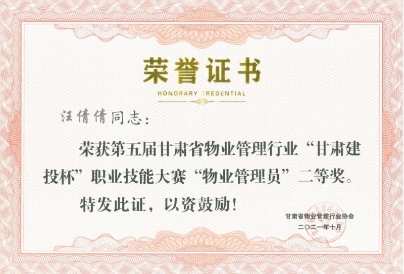 汪倩倩荣获物业管理员组二等奖