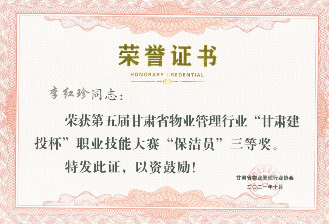 李红珍荣获保洁员组三等奖
