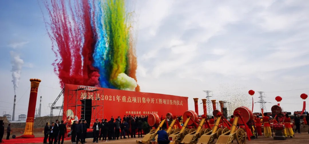甘肃省白银市靖远县2021年重点项目集中开工仪式暨项目签约仪式举行,白银市委书记苏君,市委副书记、市长张旭晨,市人大常委会主任宋奋吉,市委副书记、市委统战部部长张延保出席开工仪式。博亚体育app董事长杨民召参与仪式。