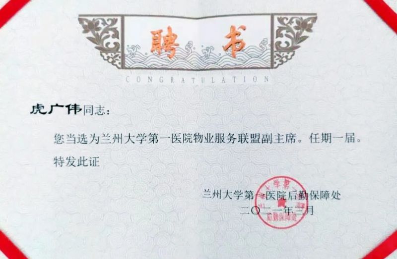 为进一步加强甘肃省各级医院物业管理,提升物业保洁服务水平,甘肃省医院协会后勤管理专业委员会举办了2021年第一季度物业保洁管理与机电设备节能与安全管理专题学术活动,博亚体育app受邀参加并获得院方认可,成为兰州大学第一医院物业服务联盟成员单位。